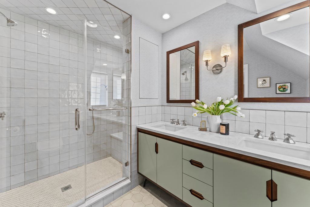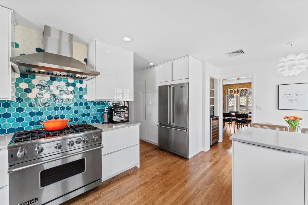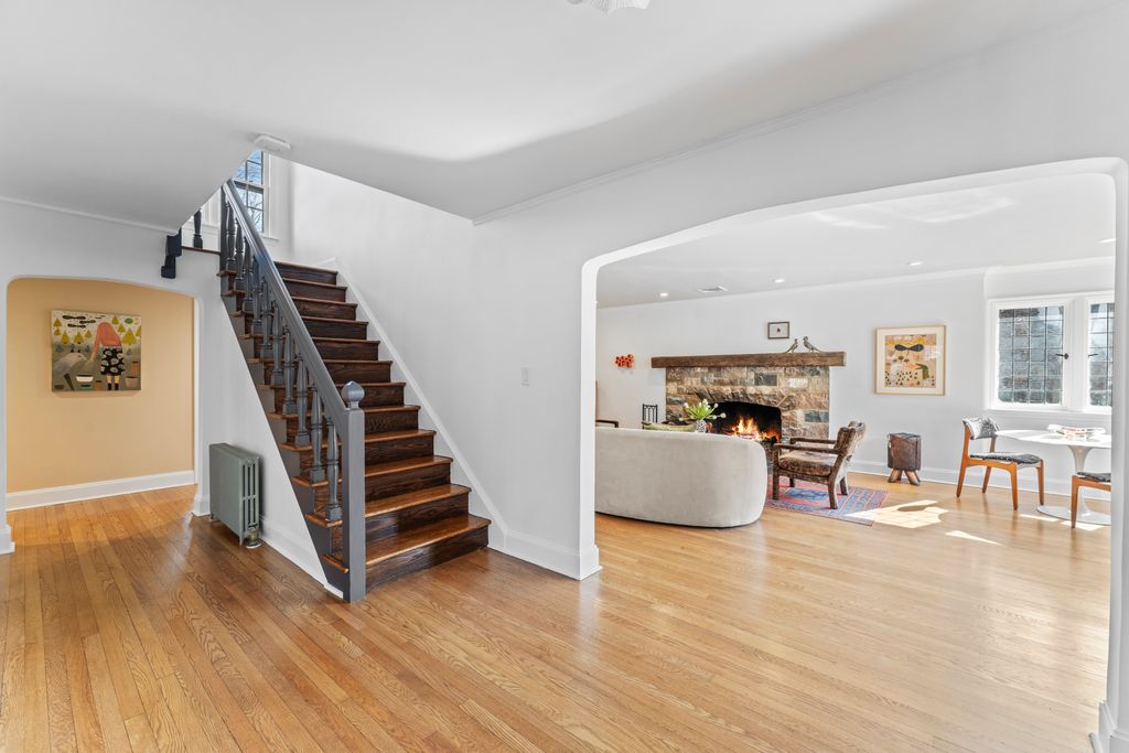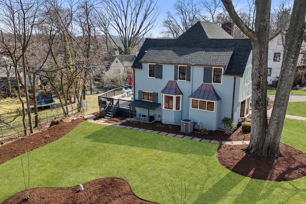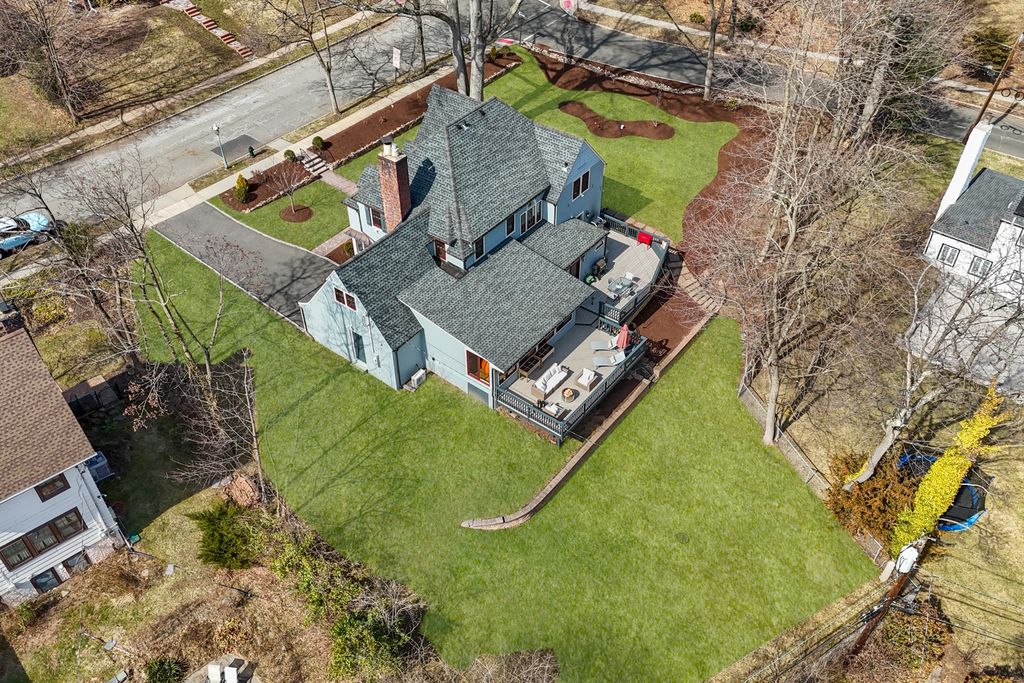Welcome to this meticulously renovated 1929 beauty, fully transformed in 2021 to blend timeless charm with modern luxury. Located on a .20-acre corner lot, this 5-bedroom, 3-bathroom home exudes elegance while offering all the conveniences of today's lifestyle. Step inside to discover expansive, light-filled living spaces that combine original features: gleaming hardwood floors, high ceilings, and leaded glass windows with contemporary updates, such as completely re-surfaced plaster walls + sun filled rooms. The spacious living room, with its majestic stone fireplace, flows into a sunroom bright w/natural light, overlooking the large back deck + yard. The formal dining room, with detailed millwork, leads into a chef's kitchen featuring stunning tile, high-end appliances + sleek cabinetry. A first-floor bedroom with a gorgeous Spanish-tiled bath offers privacy for guests or can be used as a home office. Upstairs, the primary suite is a peaceful retreat w/ luxurious ensuite bath, a double vanity + glass-enclosed shower. 3 addl bedrooms + a fully renovated bathroom complete the 2nd floor. The expansive deck runs the entire width of the home, ideal for outdoor living + entertaining, while the surrounding yard offers space for play + gardening. Located within walking distance to NJ Transit train to NYC, top-rated schools, the Baird Community Center, + downtown South Orange, this home offers the perfect balance of suburban luxury with city convenience.